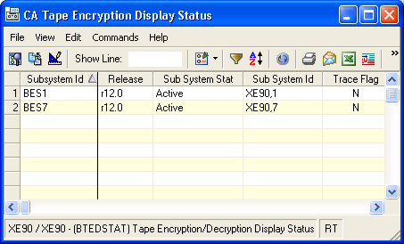 The Tape Encryption/Decryption Display Status window opens, as shown in the following sample: