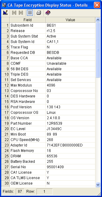 The Tape Encryption/Decryption Display Status - Details window opens, as shown in the following sample: