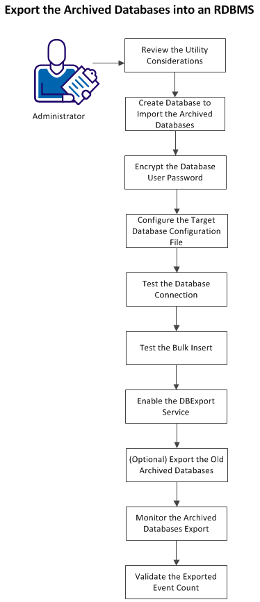 The following flowchart describes how to export the archived databases into an RDBMS: