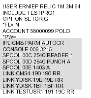 The shaded area shows the statements that come from the included directory profile; these are the only statements that differ from the example shown for the EDIT command.