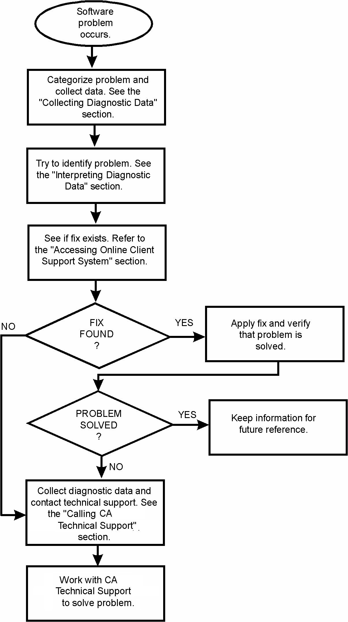 The following flowchart summarizes the procedures if you have a problem with a CA software product. Each of these procedures is detailed on the following pages.