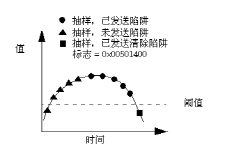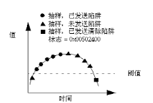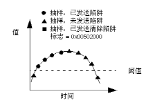 下图说明代理等到事件发生若干次后,才开始发送陷阱。 在被监控对象的值降到低于阈值之前,代理不发送陷阱;在被监控对象的值降到低于阈值时,代理将发送 processClear 陷阱。