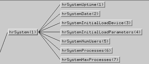 The Host Resources System (hrSystem) group provides information that pertains to the host system as a whole. The following illustration shows the organization of the hrSystem group: