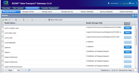 CA XCOM Gateway Administration › Manage Realms › Display Realms