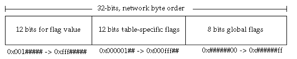 The flags value consists of three fields: