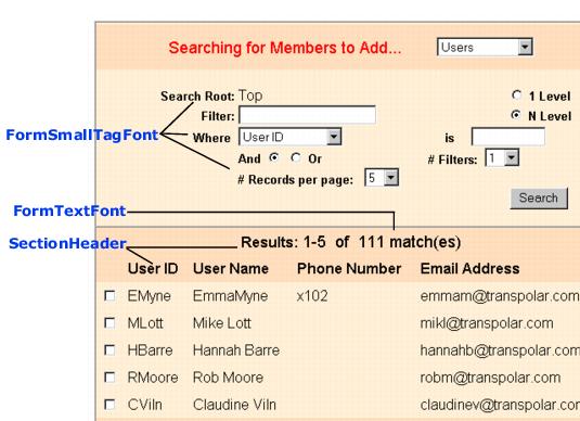 Note: The Registration Services forms that users log into do not use the Cascading Style Sheet. To modify the appearance of the login forms, edit the .FCC files, which are installed in the Forms directory where Registration Services is installed.