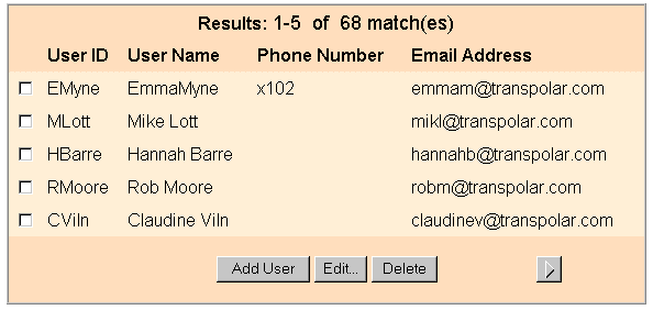 By default, Registration Services displays the results of a search query at the bottom of the search page. You can modify where Registration Services displays the search results by changing manage_data.jsp.