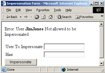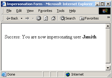 The results of an impersonation attempt must be communicated in a form. The following are examples of forms to represent both successful and failed impersonation attempts.
