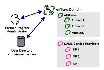 An affiliate domain is a logical grouping of federated entities associated with one or more user directories.