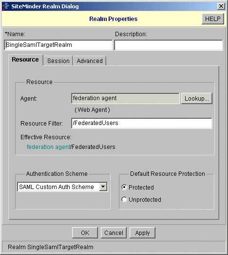 Federation › Federation Security Services Guide › Authenticate SAML 1.x Users at a Consumer › How To Protect a Resource with a SAML 1.x Authentication Scheme › How To Assign a SAML 1.x Authentication Scheme to a Realm › Configure a Single Target Realm for All SAML 1.x Auth. Schemes