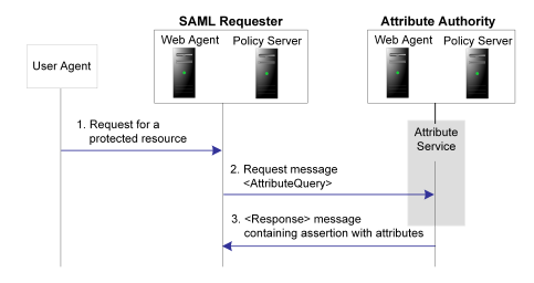 Additionally, the Policy Server can authorize a user based on user attributes provided by a SAML 2.0 Attribute Authority. When a user requests access to a protected resource, the authorizing entity can request additional user attributes to determine whether access to the resource should be granted.