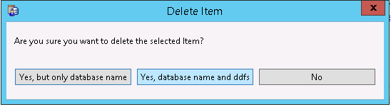 c. From the Delete Item dialog, select the option Yes, database name and ddfs.
