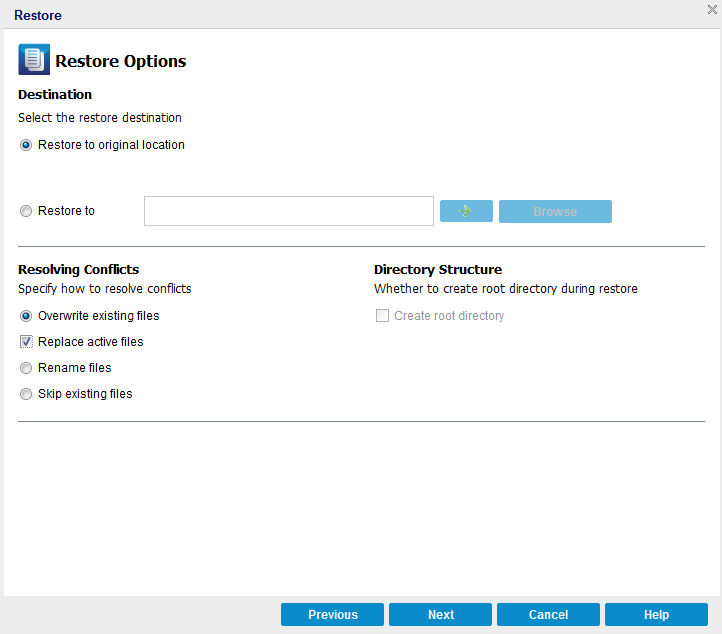 During the restore process, you have the option of where you want to restore the database to. The available selections are Restore User Database to the Original Location, Restore User Databases and System Databases to the Original Location, and Restore User Database to an Alternate Location.